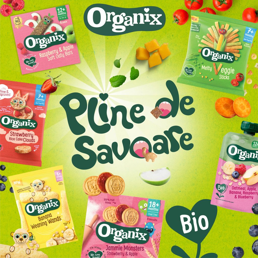 Cu o gamă largă de gusturi, texturi și forme, Organix îi ajută pe cei mici să dezvolte dragostea pentru noi arome și să se bucure de mâncatul independent, aceste gustări fiind adecvate chiar începând cu vârsta de 6 luni. Fie ca vorbim de snackuri, batoane, biscuiți, rondele sau piureuri la punguță, părinții au siguranța că cel mic primește un aliment sănătos, organic, fără sare sau zahăr adăugate, fără aditivi sau alte lucruri care nu au ce căuta în alimentația unui copilaș. Mai mult decât atât, fiecare produs Organix este dezvoltat în așa manieră încât o porție are sub 100kcal, lucru excelent pentru controlul alimentației copilului.
