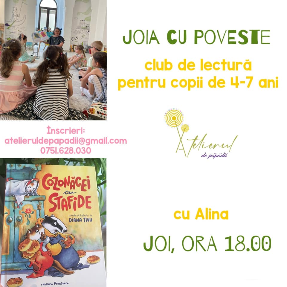 Sper să alegeţi cele mai potrivite activităţi pentru voi şi copiii voştri şi să reveniţi cu feedback. Eu vă mulţumesc pentru răbdarea de a parcurge această lungă listă şi vă amintesc că în meniu aveţi o căsuţă unde vă puteţi abona (dacă n-ați făcut-o deja), astfel încât să primiţi un mail de îndată ce următoarea listă va fi publicată.