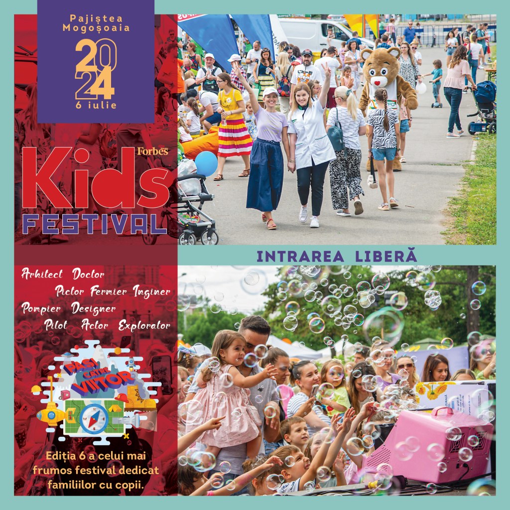 Revenind la acest final de săptămână, dacă sunteți în București, sper tare să ne întâlnim sâmbătă la Forbes Kids Festival, în Grădina Palatului Mogoșoaia, să petrecem împreună o zi-experiență pentru copii în lumea fascinantă a meseriilor. Vor fi meseriile trecutului și meseriile viitorului, pentru un PREZENT cât mai autentic, educativ, valoros, plin de satisfacție, revelații și conectare în FAMILIE. Cei mici vor putea participa la o mulțime de activități: jocuri, concursuri și campionate de șah, ateliere de pictură și de desen, workshop-uri interactive pe diverse tematici, spații de joacă și relaxare. Iar la SCENĂ se anunță program intens și variat: muzică și dans pentru copii; piese de teatru și spectacole artistice (Teatru Ion Creangă, Opera Comică pentru Copii, Trupa Minunații, Magicianul Teo etc.); reprezentații cu acrobați, jongleri și magicieni; show de baloane de săpun și distracție cât cuprinde. Intrarea este liberă, cu înregistrare în prealabil aici.
