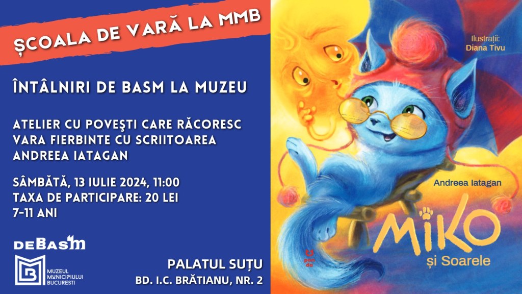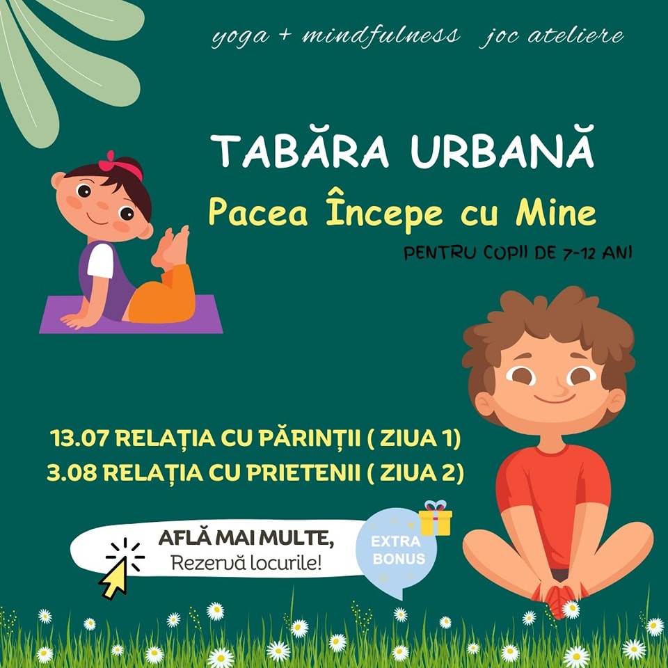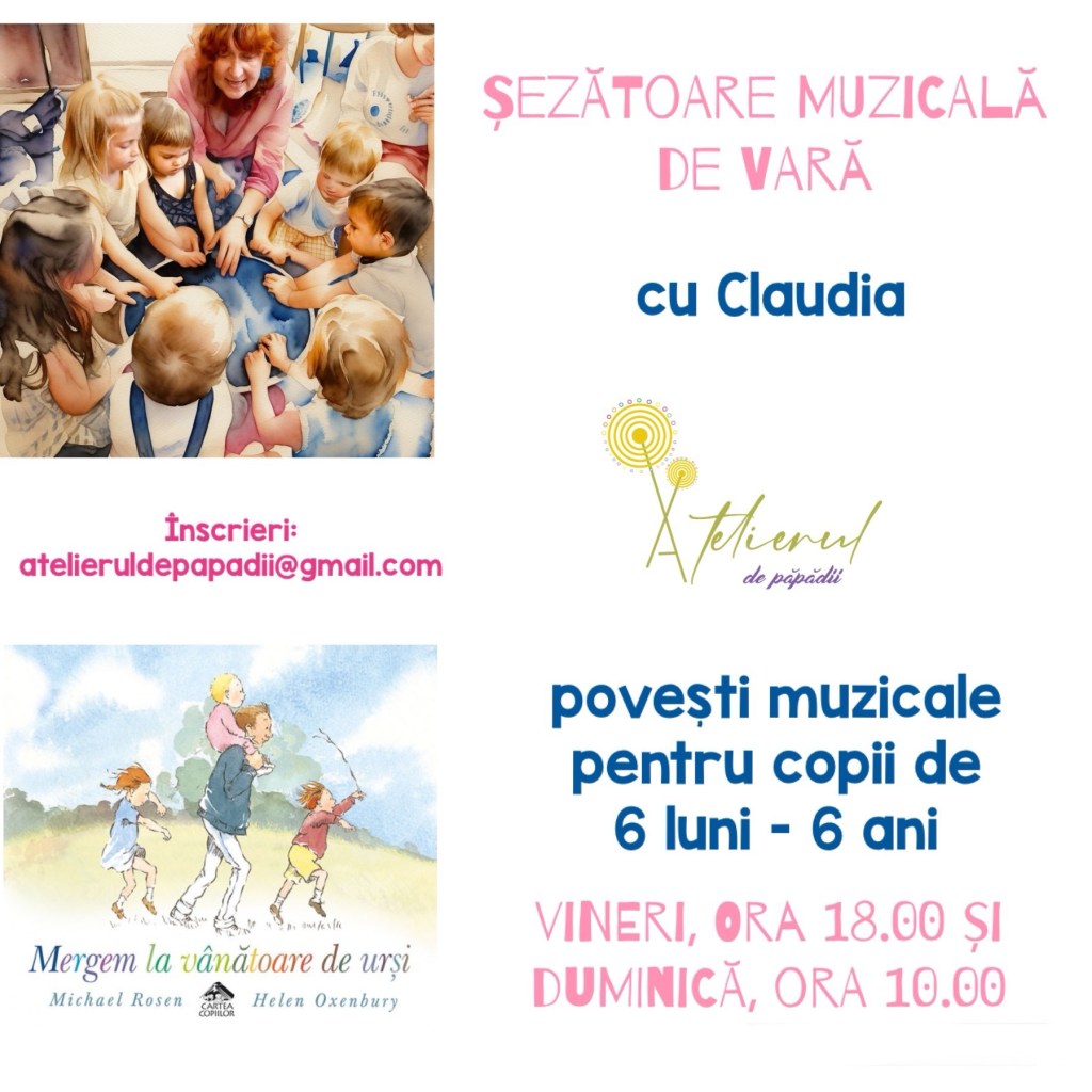 Dragi părinți, oare mai sunteți în București? Până și lista se tot scurtează, pentru că la așa temperaturi, toți fugim de canicula urbană. Dacă totuși sunteți dintre curajoșii care rămân, am o surpriză dacă parcurgeți lista: veți găsi ateliere unde dacă spuneți #StiuDeLaSorina, veți primi o reducere (de exemplu: la Mima Muzica – 10%, la Aurora Hub – 20%).