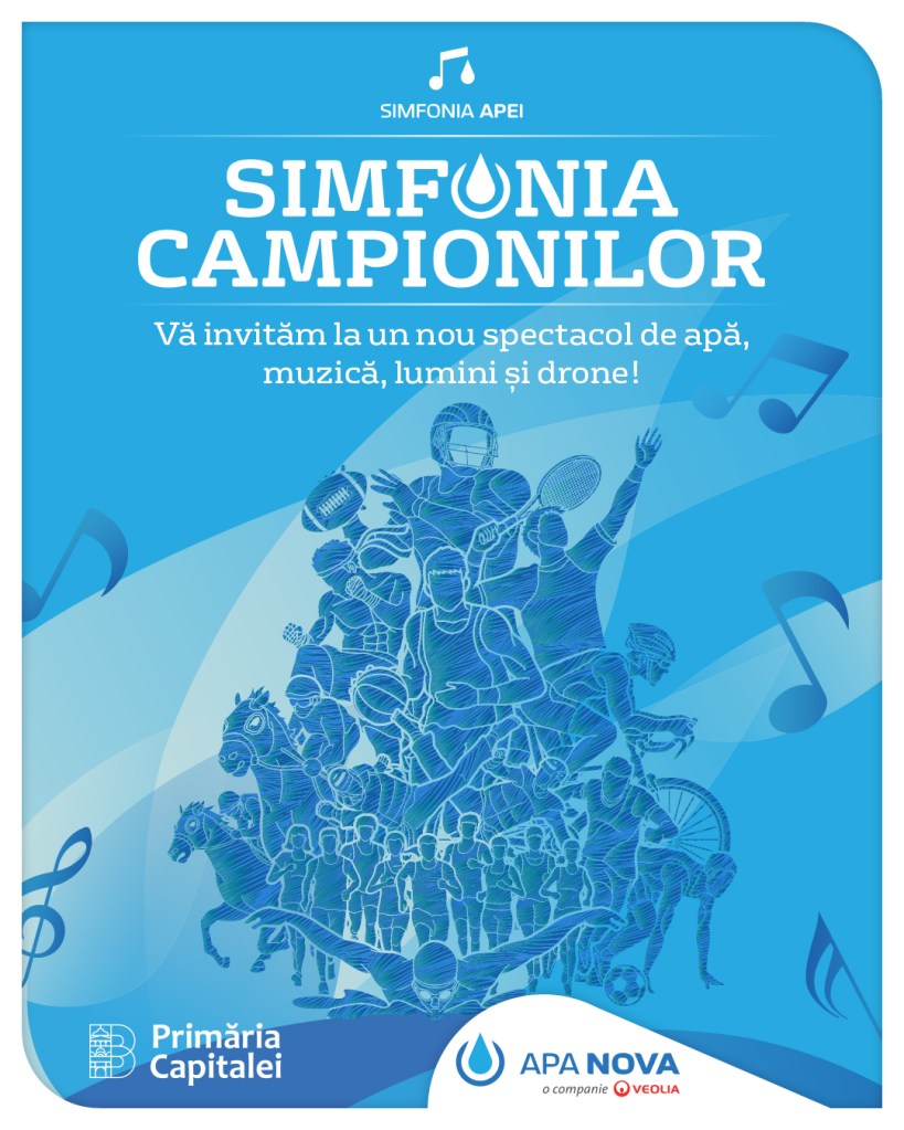 – Simfonia Campionilor – spectacol de apă, muzică, lumini și drone, la Fântâni Urbane Piața Unirii, 17 august, ora 21