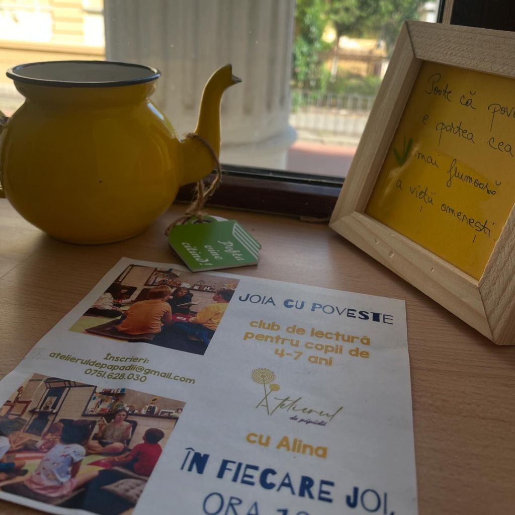 – Joia cu poveste – club de lectură pentru copii, la Atelierul de Păpădii (zona Piața Rosetti), 15 august, ora 16, 4-7 ani, participare pe bază de donație de minim 30 lei