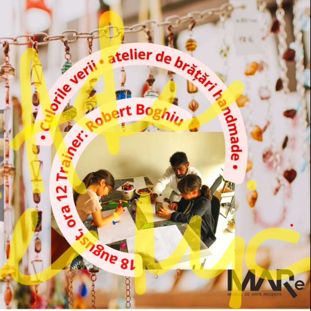 – Culorile verii – Atelier de brățări handmade, la MARe/Muzeul de Artă Recentă, 18 august, orele 12 (4-7 ani) și 13:30 (8-12 ani), 85 lei/copil