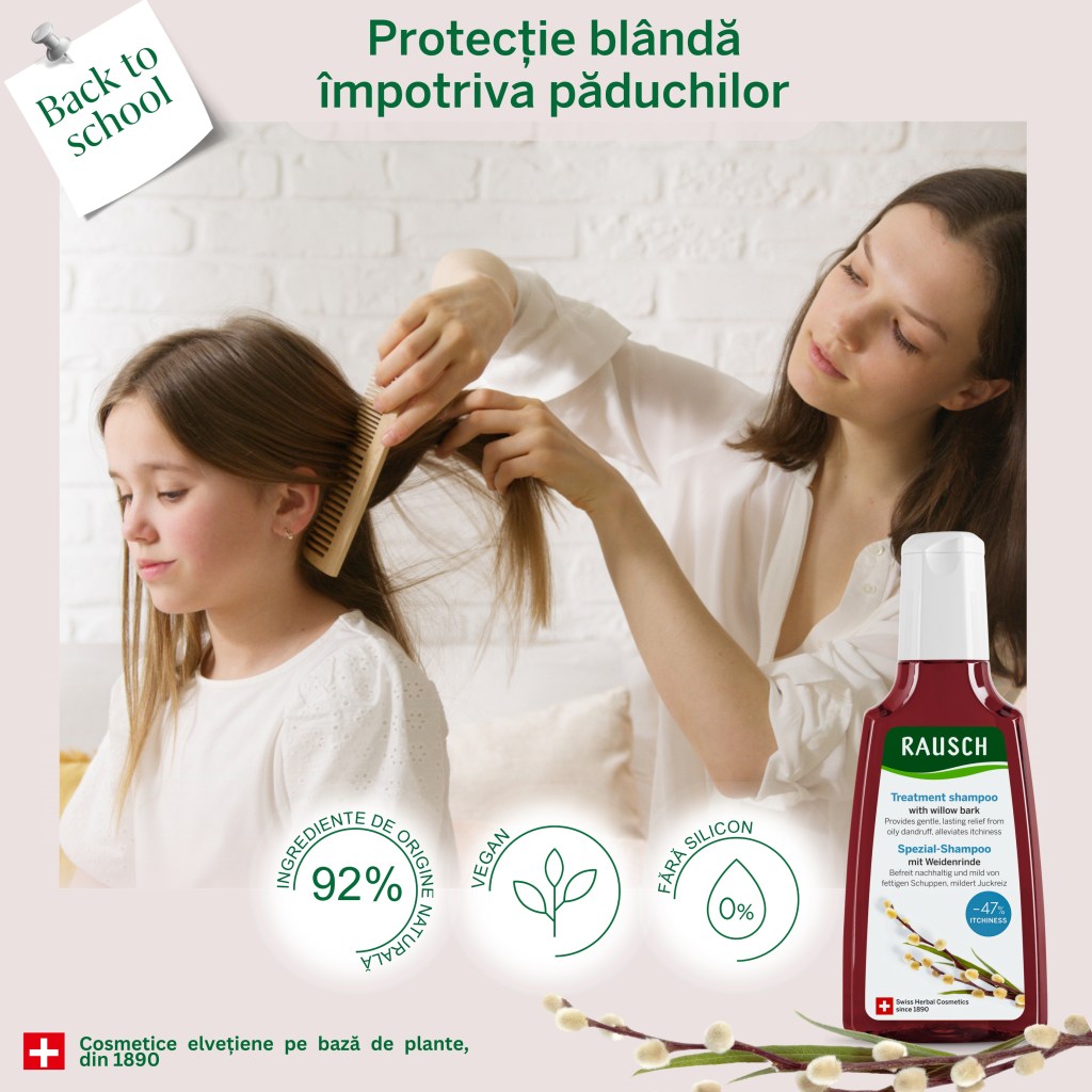 De aceea, producătorul elvețian RAUSCH a dezvoltat șamponul cu scoarță de salcie care are un dublu rol: pe lângă faptul că acționează împotriva mătreții grase și a pruritului, și-a dovedit eficiența și ca protecție împotriva infestării cu păduchi.