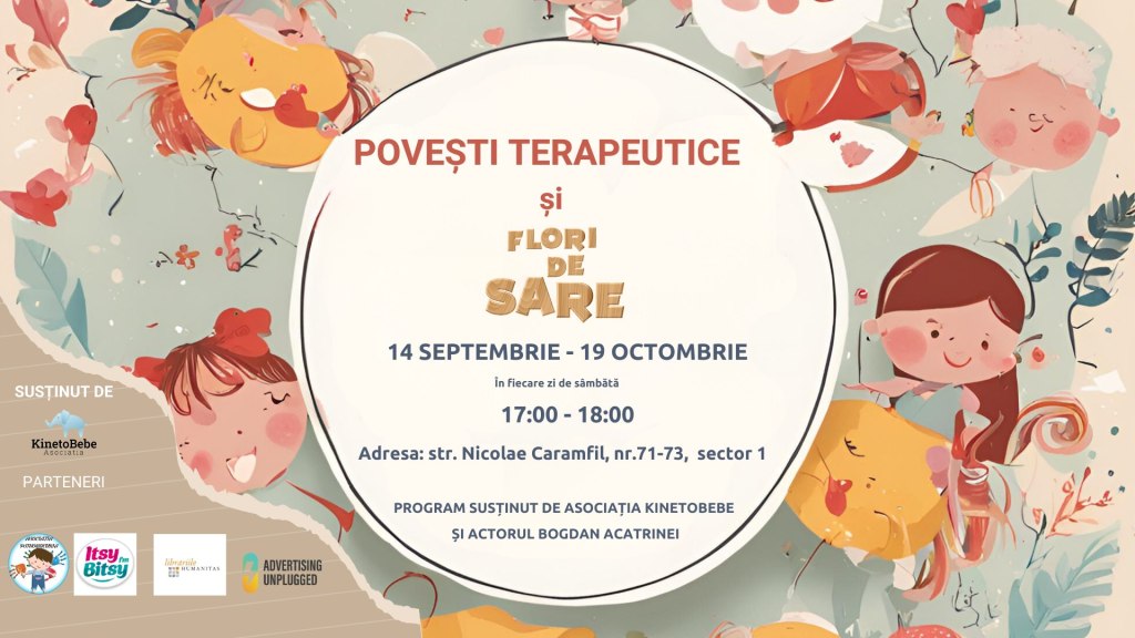 – Povești terapeutice și Flori de Sare, la Salina Flori de Sare, 19 octombrie, ora 17, 6 ani+, participare gratuită pe bază de înscriere