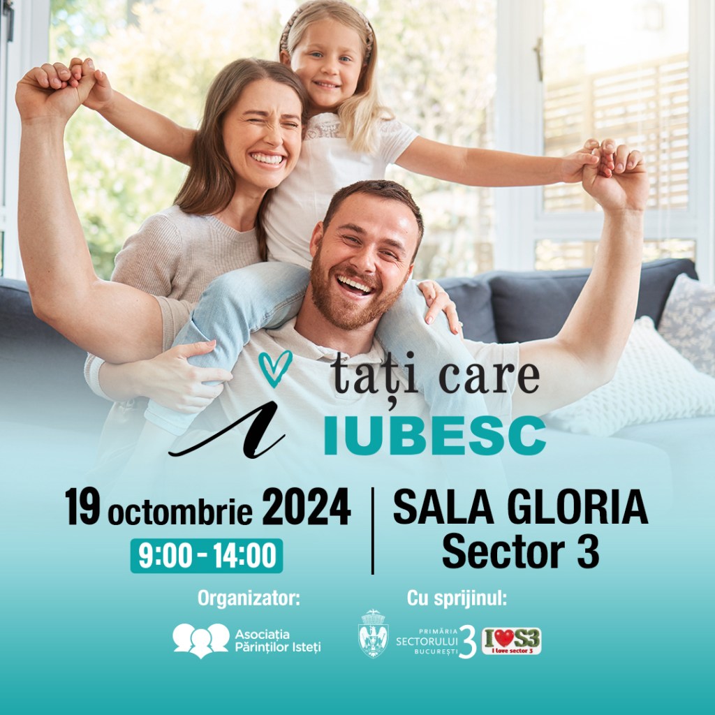 – Tați care iubesc, la Sala Gloria, 19 octombrie, ora 9, acces gratuit pe bază de înscriere