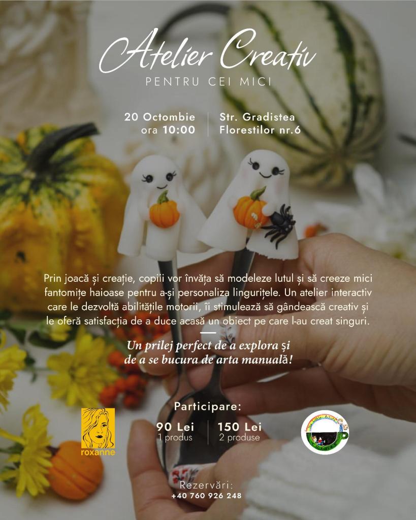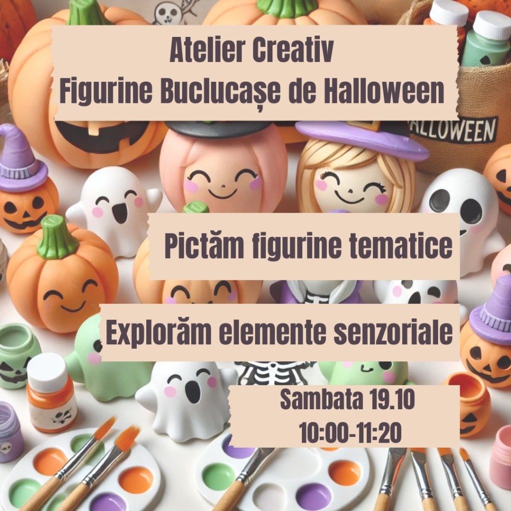 – Atelier creativ – Figurine buclucașe de Halloween, la Atelierele Bibiki (zona Valea Oltului), 19 octombrie, ora 10, 1-5 ani, 90 lei/copil