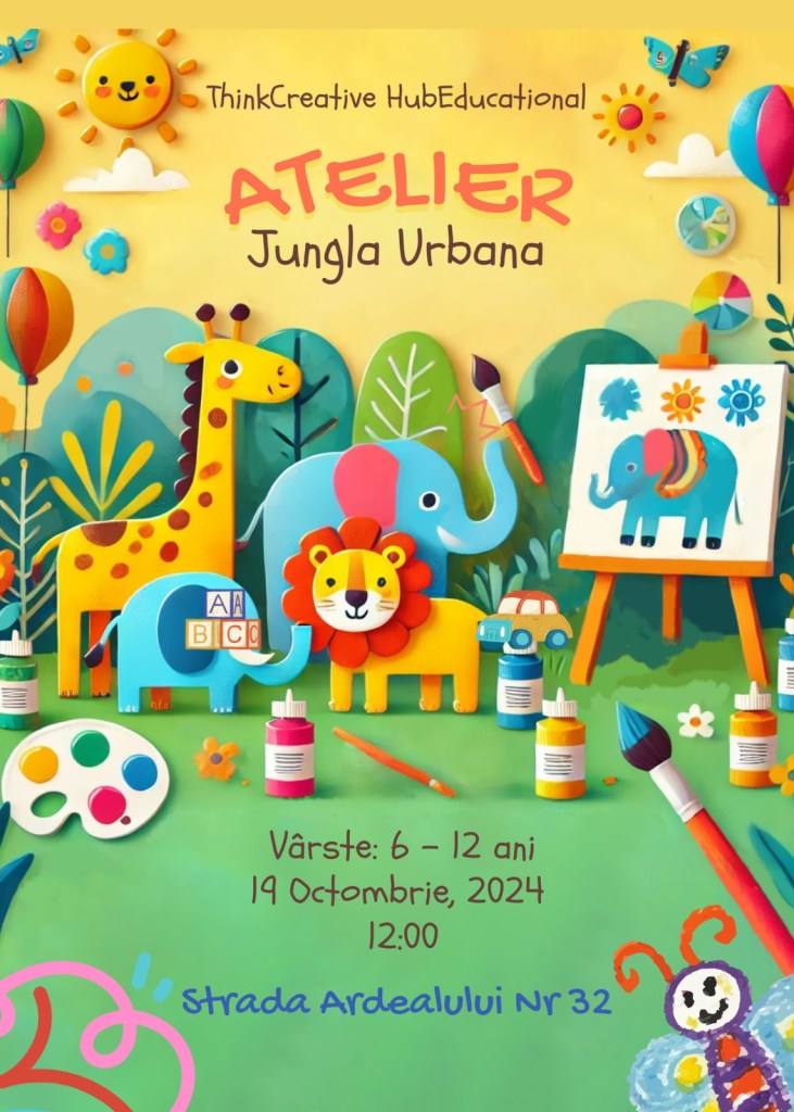 – Atelier de pictură creativă pentru copii: Dă viață imaginației, la ThinkCreative After & Hub Educational, 19 octombrie, ora 12, 6-12 ani, 100 lei/copil