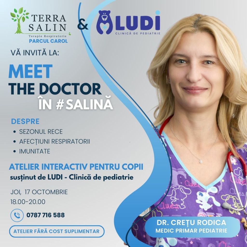 – Meet the Doctor în #salina cu LUDI, la Terra Salin Parcul Carol, 17 octombrie, orele 18 și 19, inclus în sesiunea de haloterapie