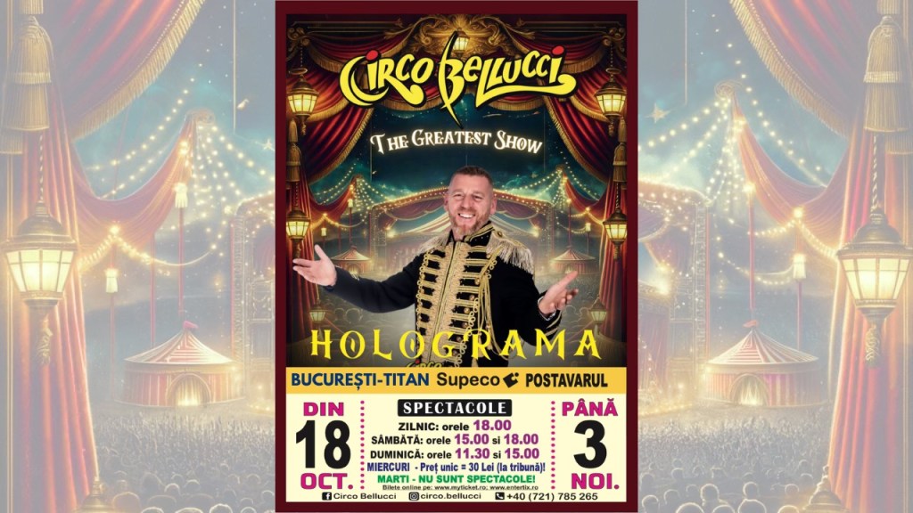 – Circo Bellucci, la Supeco Postovarului Titan, 20 octombrie, orele 11:30 și 15