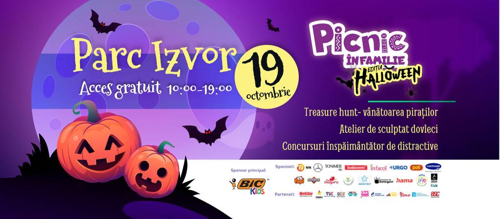 – Social Moms: Picnic în familie – Ediția de Halloween, în Parcul Izvor, 19 octombrie, între orele 10-19, acces gratuit pe bază de înscriere