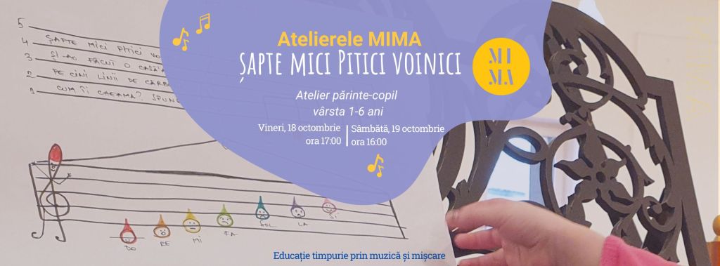 – Șapte mici pitici voinici – atelier muzical, la MiMa Muzica, 18 octombrie, ora 17, 1-6 ani, 100 lei/copil – 10% reducere dacă folosești codul #stiudelasorina
