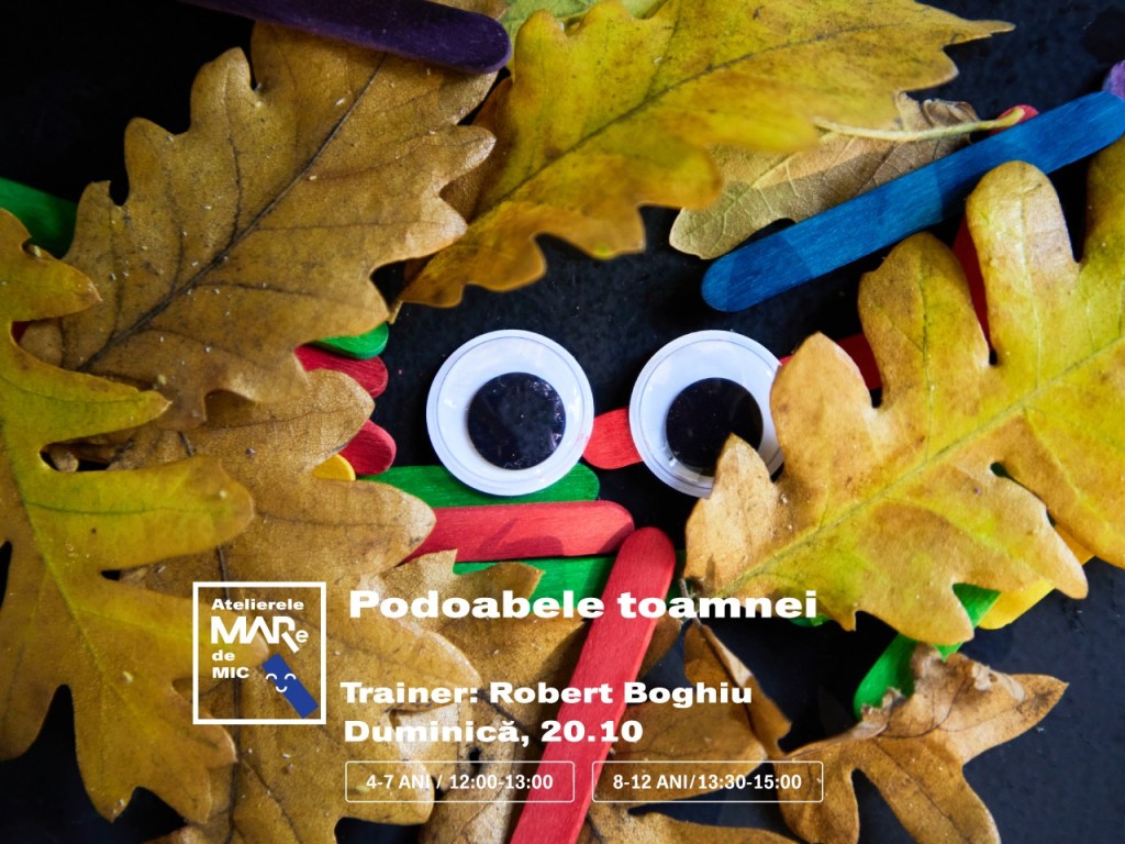– Atelier MARe de Mic – Podoabele toamnei – atelier de brățări handmade, la MARe/Muzeul de Artă Recentă, 20 octombrie, orele 12 (4-7 ani) și 13:30 (8-12 ani), 100 lei/copil