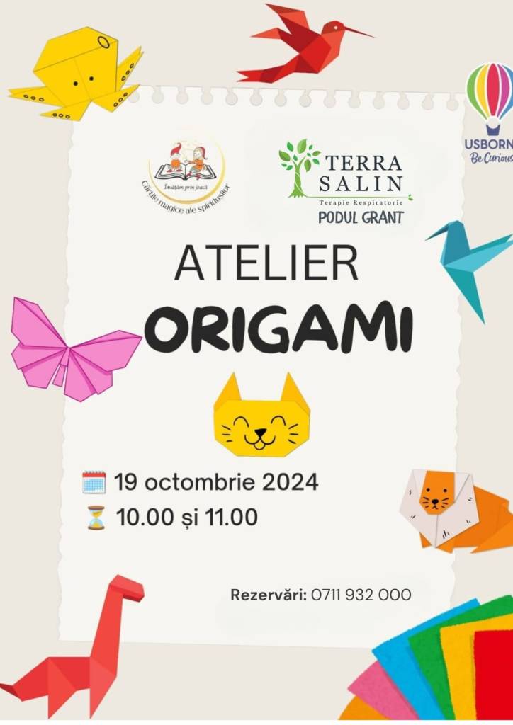 – Atelier de origami, la Terra Salin Podul Grant, 19 octombrie, orele 10 și 11, inclus în sesiunea de haloterapie