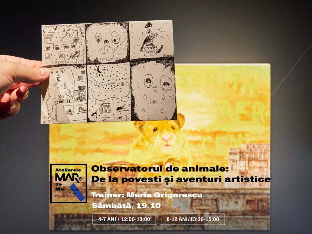 – Atelier MARe de Mic – Observatorul de animale: De la povești și aventuri artistice, la MARe/Muzeul de Artă Recentă, 19 octombrie, orele 12 (4-7 ani) și 13:30 (8-12 ani), 100 lei/copil