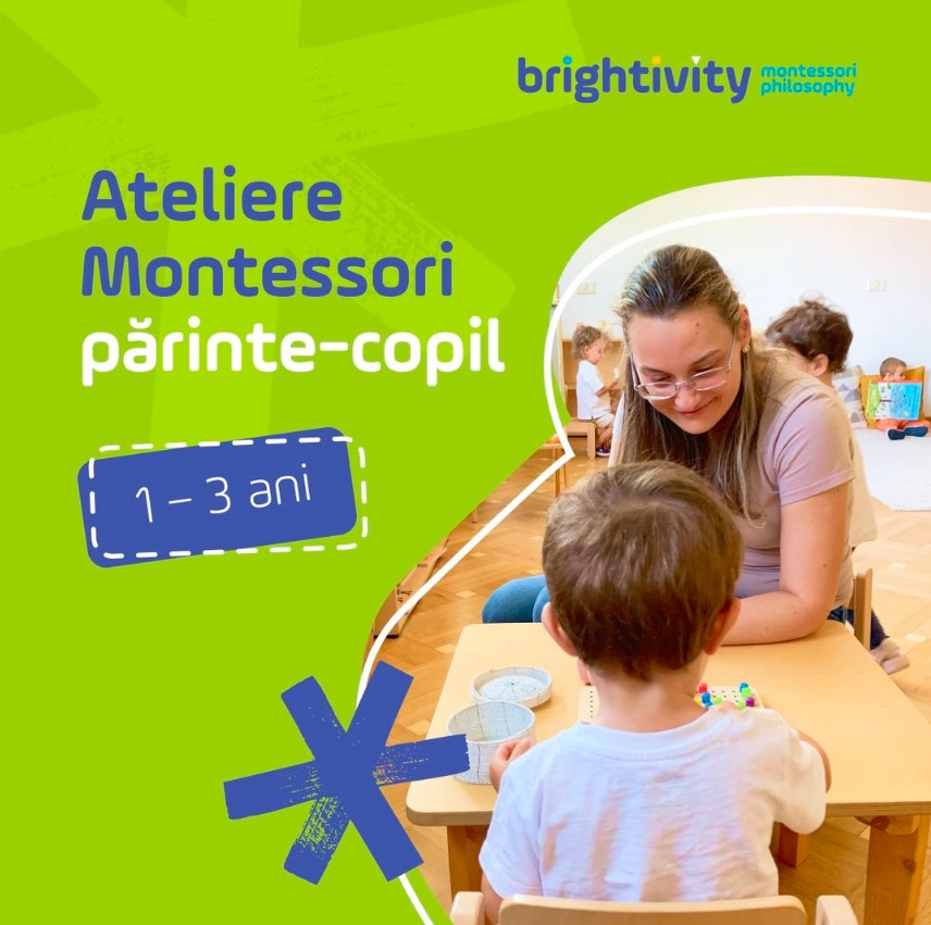 – Atelier Montessori părinte-copil, la Brightivity Montessori Băneasa, 19 octombrie, ora 9, 1-3 ani, 180 lei/copil+părinte